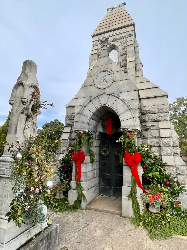 *The Holiday Spirit event is actually this weekend if you’d like to see it all for yourself. December 7 & 8, 10 a.m. til 4 p.m. although the decor stays up over the holidays and into the first of the year (depending on weather). The cemetery has food, music, tours and more. I’ll be there!