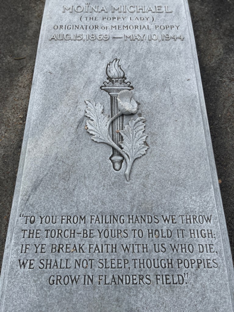 In an oddly barren plot that is lined with cement and granite, you’ll find one of its most famous residents – Moina Michael or ‘The Poppy Lady.’