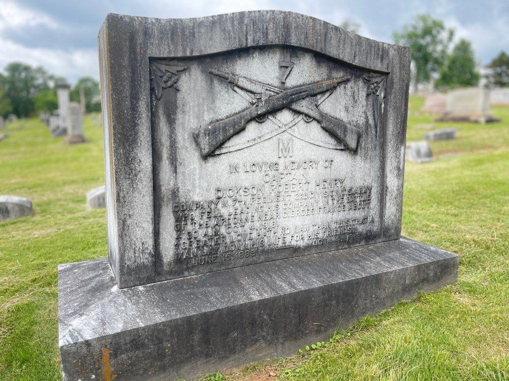 His original tombstone was a small statue inscribed in French but it was stolen many years prior. After its disappearance a simple stone marker was placed on his grave. However in 2022 this new stone was dedicated to him and is engraved with a portrait of him at his actual size.