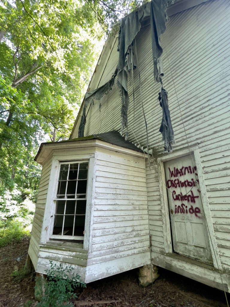 The church was built sometime between 1850 & 1870 (researched dates are a bit conflicting) and was originally established by the Blackwell family. Many of the Blackwells are buried in the graveyard on the property and it appears that there some burials within the last few decades despite the rapid decline of the property.