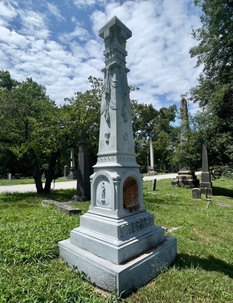 The zinkie of Lazarus C. Shepard has a story about bootleggers and prohibition attached. Not uncommon for these monuments but with this grave I found it documented in writing! Also, it appears that someone tried to spruce up the metal with some kind of ‘wash’ that left brush marks.