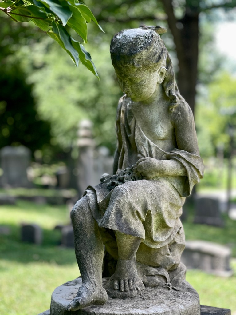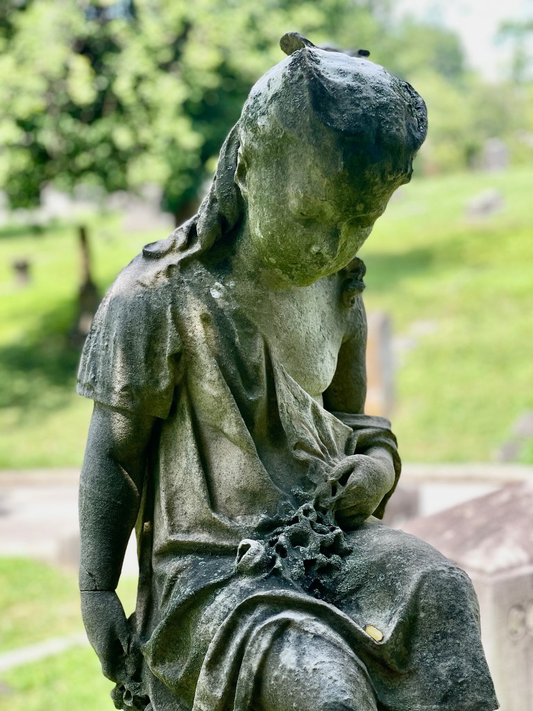 Lillien Gaines died at 7 years old and her gravesite receives lots of visitors and gifts. There were fresh flowers on the ground behind her statue and someone had left a small crystal in her lap.