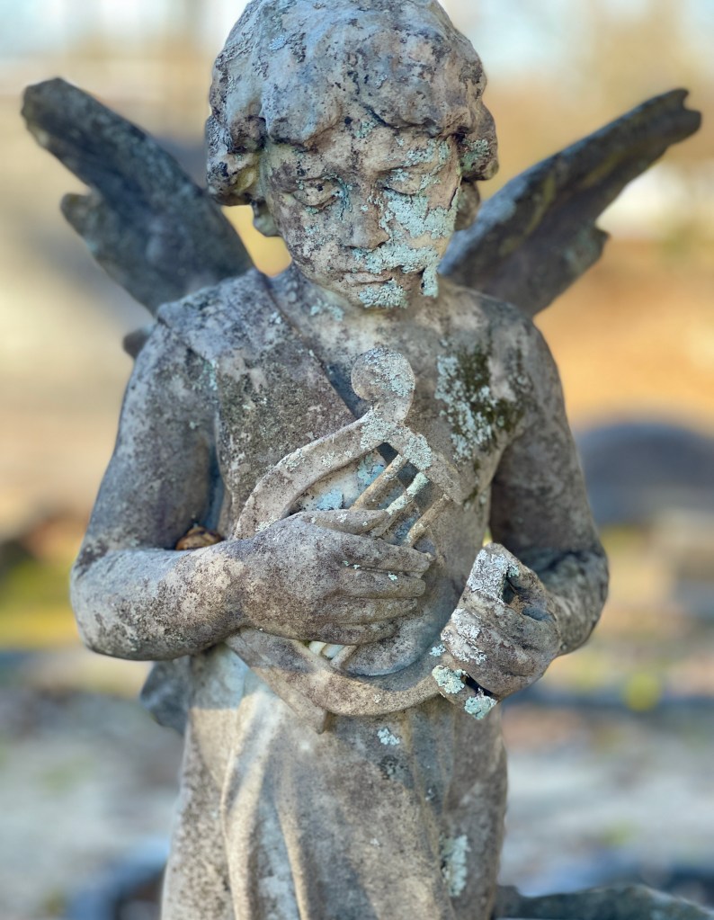 A sad angel plays his lyre at Resthaven Cemetery in Washington, Ga.