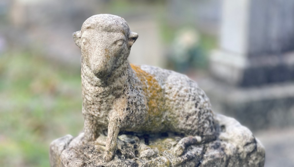 The stone is over 100 years old but the story is one that is as old as time. Children’s graves are often marked with historically innocent-themed imagery such as angels, the buds of flowers yet to bloom or sleeping lambs.