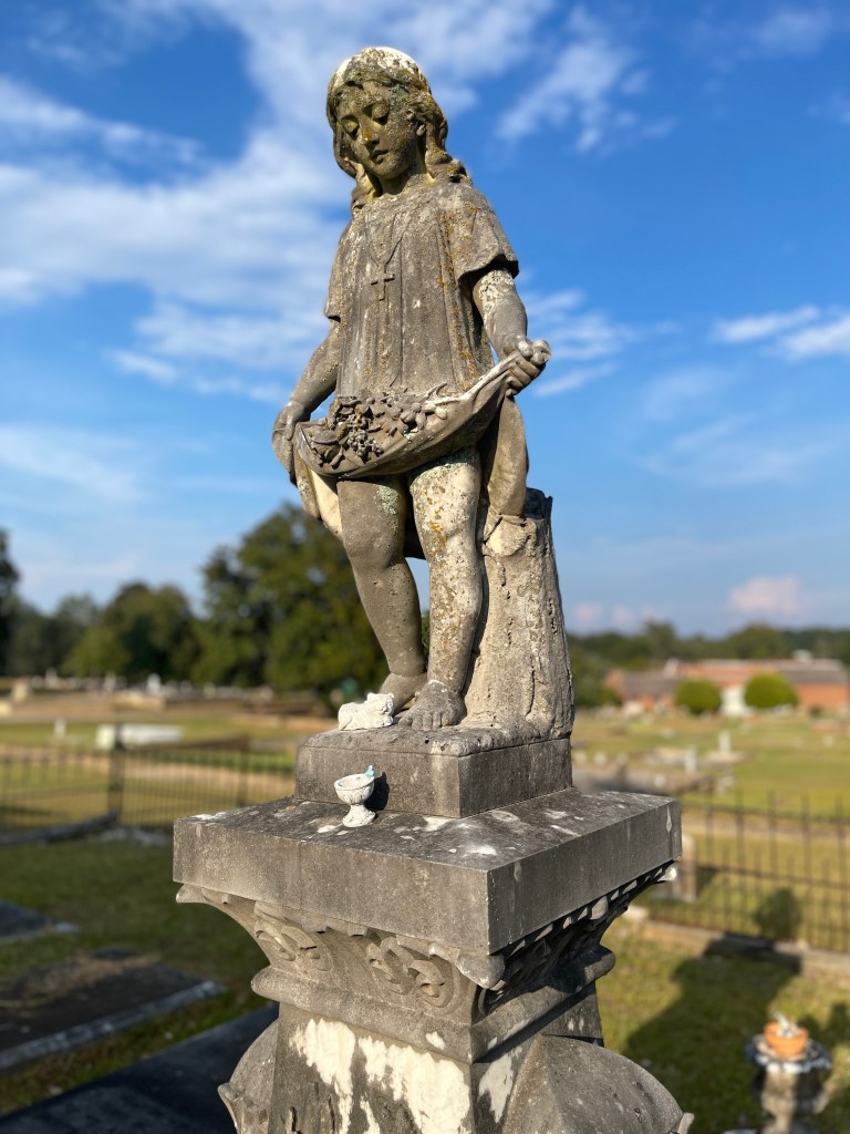 My trip back home was much more loosey-goosey and I was able to stop by two cemeteries in Griffin that I had bookmarked. I was trying find the possible burial spot of a historically famous person and the very definite burial spot of his sister. I found both but I also found some incredible funerary art that I have to share as well…