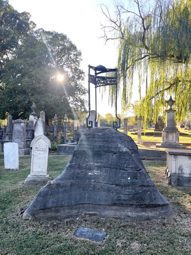 I have to openly admit that while I don’t find cemeteries to be spooky (well, usually don’t…there’s been a random few that definitely leaned toward the eerie side), I do love visiting them when I hear they have an odd or sad or wild story attached to a resident. And us Southerners, we do love our weird stuff don’t we? There is no shortage of head-scratching, tissue-clutching and turn-on-the-light stories around here!