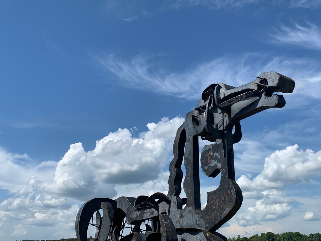 The ‘Iron Horse’ is a 12-foot-high, two-ton abstract sculpture of a horse. It is the work of Abbott Pattison, a visiting artist-in-residence from Chicago who was working on a Rockefeller grant to introduce modern art in the South. He constructed the horse by welding together pieces of boilerplate steel in 1954.