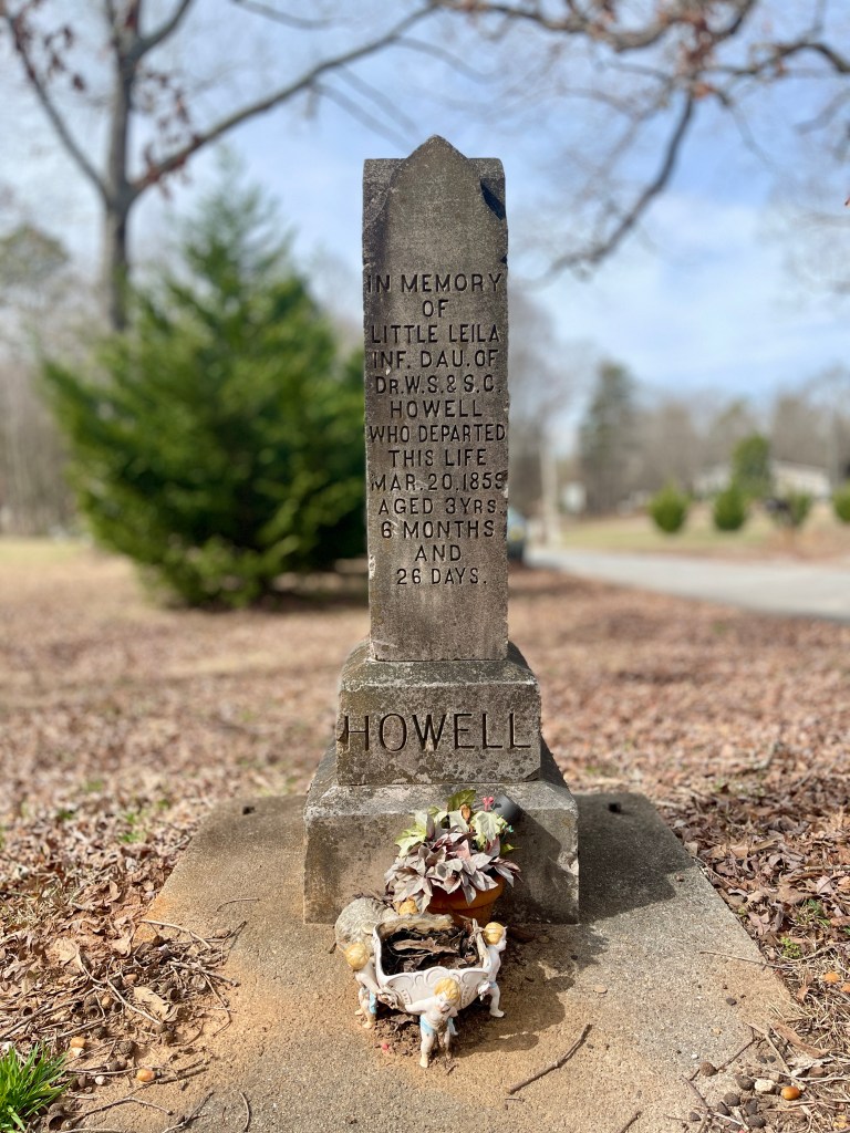 One fact is that the Howell family did move to Texas after Leila’s death. The remaining family was buried at a plot in Bryan, Texas with no mention of the little girl whose monument sits alone in South Carolina…