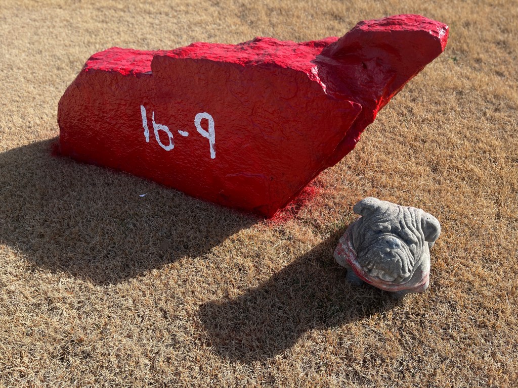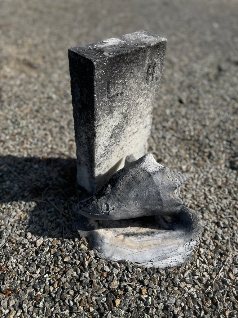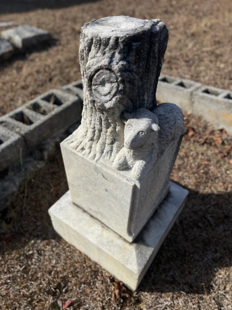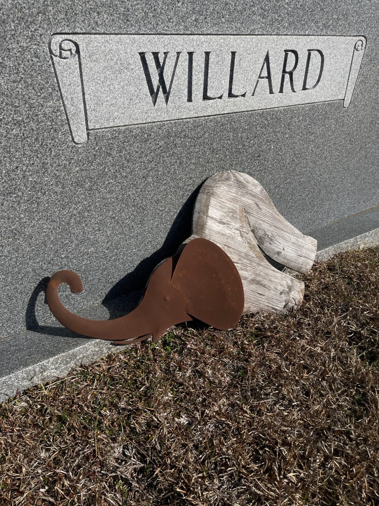 This is a wild card mix of grave goods! A weathered elephant rests rump up on a grave that was covered with lots of like themed items. An ancient seashell. A bulldog (or around here, DAWG) sits next to freshly painted rock bearing the final numbers from the recent UGA vs Georgia Tech game. I always love to see the dead remembered so fondly with these types of tokens and actions. So sweet. (Unless that person buried was a Tech fan and then some UGA folk will be getting the haunting of a lifetime!)