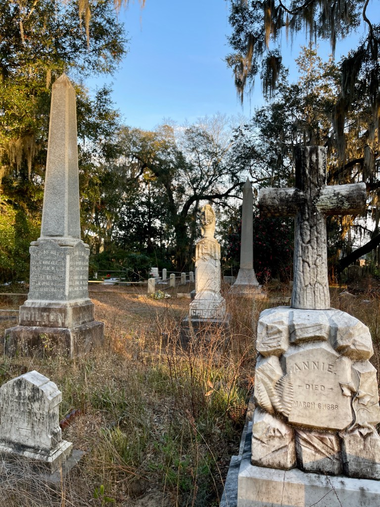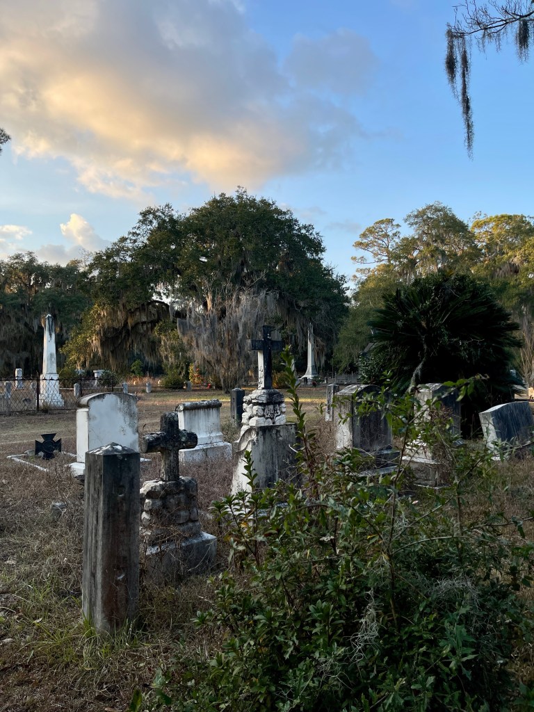 A cemetery with a view, St. Andrews sits right on the edge of the marshes and the light there is just spectacular. It lights up the trees like they’ve been dipped in gold!